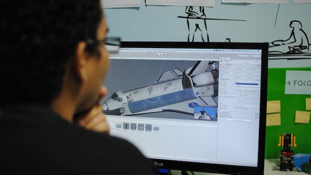 At first, the team had wanted to make a game about the ever-popular Mars rover, but everyone else was already doing that, and the mechanics didn’t seem realistic enough. So, they kept looking. Then, they “found an amazing resource about astronaut training, and ideas were flying all over the place,” says Angela. “The player would have to master abilities like walking in microgravity, piloting a space shuttle, and controlling a robotic arm.” There wasn’t enough time to put all of that in, of course, but the NASA jam seems to have served its purpose: to get people excited about space.