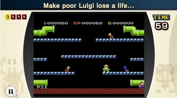 NES Remix pretends to be a simple game. In essence, the title breaks down a dozen early NES games into their individual parts and lays them out, buffet-style, for your noshing pleasure. A “level” in Super Mario Bros. asks you to “Collect the coins!” or “Defeat the Goomba!” Once you run forward and do just that, a ring sounds, as one might at the end of a boxing match, and the action stops. Some levels are a single round; others are a series of rapid-fire moments, one after the other. You’re given a score of up to three stars based on how long you took to complete the sequence. The more stars you earn, the more games and levels open up.