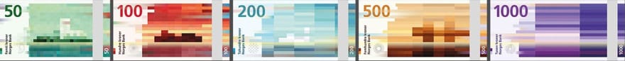 Earlier this year, Norges Bank called on eight design firms to propose new banknotes inspired by the sea. The competition’s two winning entries, submitted by The Metric System and Snøhetta, could not be more dissimilar. The Metric System’s design for the Krone’s front focuses on traditional drawings of maritime life. Snøhetta’s submission, which forms the back of the Krone, turns coastal scenes into pixelated abstractions.