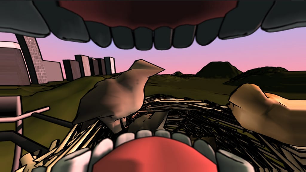 That said, Oral Perspectives has to be one of the strangest re-imaginings of waking life. Designed for VR, a microphone and a custom jaw sensor, it “takes place from a visually, aurally and kinesthetically shifted perspective a few inches lower than the natural position, inside the user’s oral cavity.” The jaw sensor provides discomfort as you have to keep your mouth open in order to experience the world, a bit like chewing gum for an hour.