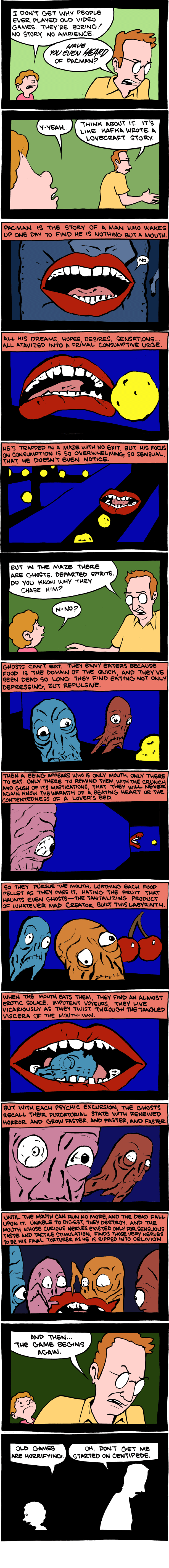 The webcomic Saturday Morning Breakfast Cereal retells Pac-Man in the mode of surrealist existential horror.