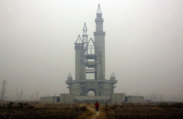 Construction work at the park, which developers had promised would be “the largest amusement park in Asia,” stopped around 1998 after disagreements with the local government and farmers over property prices. Developers briefly tried to restart construction in 2008, but without success. The abandoned structures are now a draw for local children and a few photographers, who encounter signs telling them to proceed at their own risk.