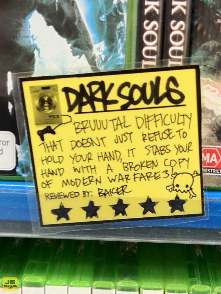 An Australian videogame store includes staff-written reviews, adding personalized flavor and humor to the store.