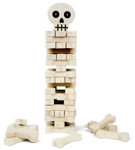 Anyway, like we said this is perfect for your Halloween party, assuming your drunken guests will be able to muster the coordination to pull bones out of a stack (also, they should have called this Bonestack! complete with vestigial exclamation point). Or, better yet, look no further than Stack the Bones as the number-one Christmas gift to that preteen, proto-goth cousin of yours who isn’t quite ready for a Bauhaus CD.