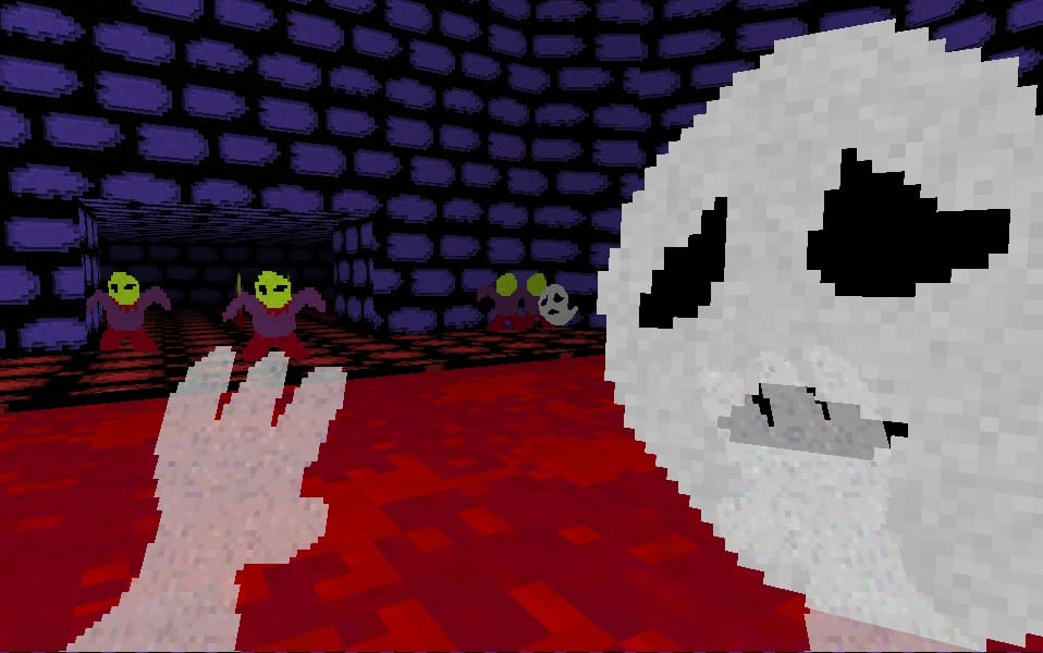 Then there’s Lilith, who we profiled previously, and whose games we described as operating “within a sort of dream architecture”—they’re all muddy low-resolution textures and dark dungeons inhabited by sullen personalities. Expect nothing different from Ghost Tower, her entry in Trinketwave Shrine, which has you spook the weird scuttling inhabitants with a gurgled boo as you swoop through the tower’s residential spaces.
