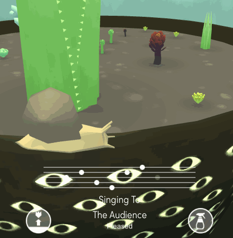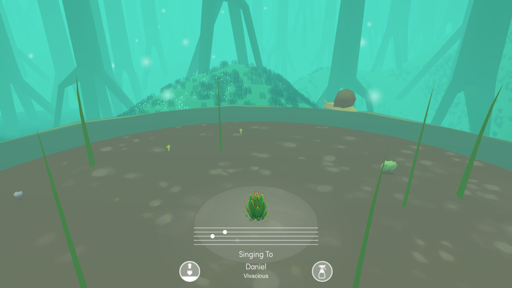 All you do is visit your potted plants every now and then to water them, sing to them, just observe them as they steadily stretch their forms to become bigger. There’s no pressure to come back frequently as not much would have changed and they won’t die as quickly as real plants would if abandoned (though they will deteriorate after a while). Even so, every time I return there’s something maternal that awakens inside me, as if I’m hovering over a crib and checking up on my babies. If you water them they go from “Parched” to “Sated,” and if you sing to them for long enough they’ll be “Vibrant,” so there is some subtle interaction here—you can affect the flower’s mood, as it were, by giving them attention.