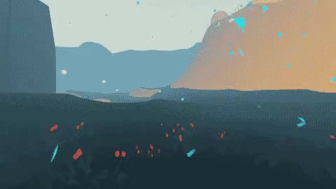 Another gif shows huge spherical monuments toppling off a cliff and half burying themselves into the valley below, which offers a good look at the vast scale and dynamism of Shape of the World’s thriving locales.