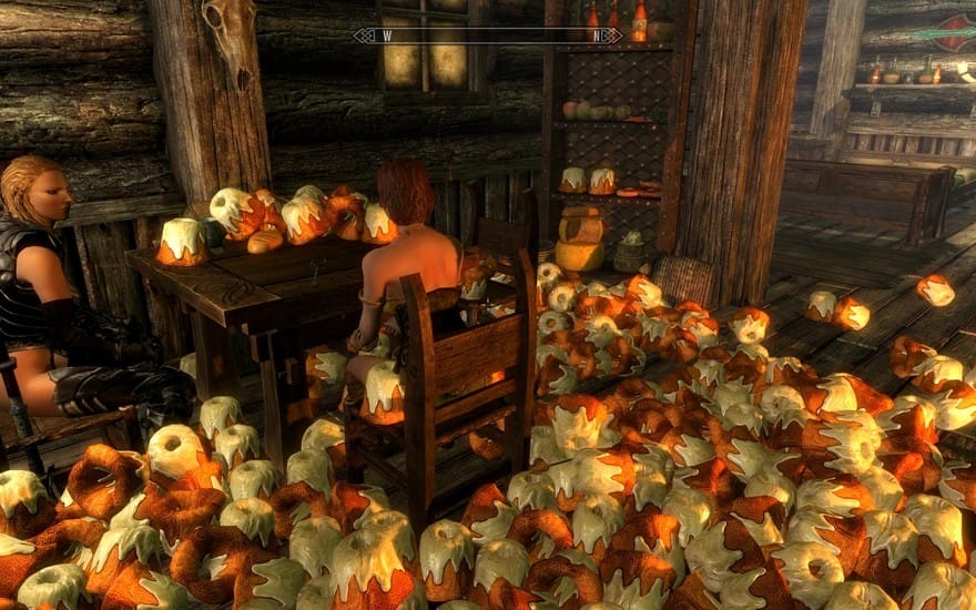 You can play Skyrim, never touch the main story, and just go on an eating tour around the world. You can never get inducted into a secret society of vampires, never forge a single shield. You can just eat.
