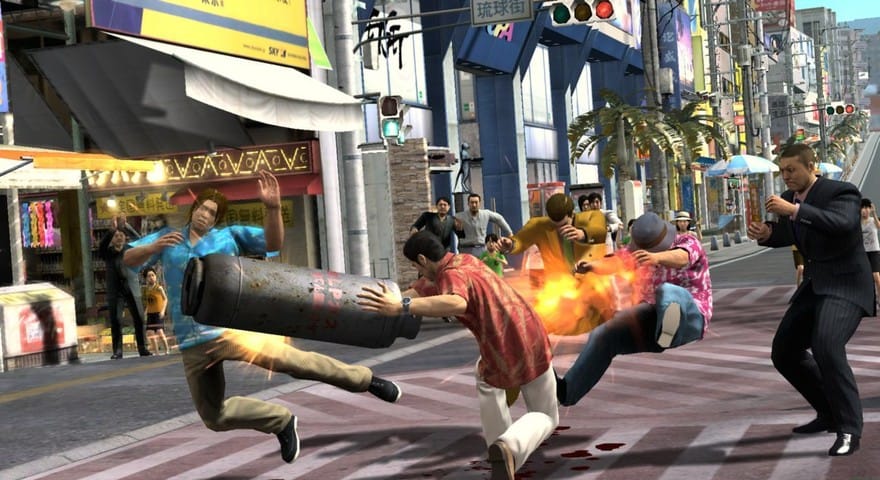 Wandering around in Yakuza is much like wandering around in Shenmue. That is, you are a badass Japanese gangster-type. You walk around a realistic-seeming city with a worthy cause (in Shenmue you avenge your papa’s murder; in Yakuza you wander around fictionalized versions of real Japanese cities and do noble shit like try to save orphanages). Like in Skyrim, you can never even touch the main game, just eating shit as you go. People stop and pick fights with you. When you pump the brakes and engage the locals in conversation, they do little more than bark clipped, awkward sentences.