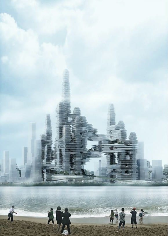 A recent contest in the city of Shenzhen seeking proposals for an eco-friendly financial district a la London’s Canary Wharf revealed these stunning designs for a cloud-shaped skyscraper.
