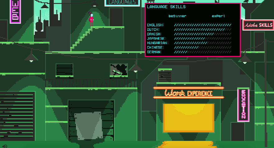 Seth van Heijster has created an interactive resume that is also a game, but is basically a really cool resume. In his platformer, imaginatively named Interactive CV, your character runs and jumps around a streetscape, unlocking details about Van Heijster as you go.