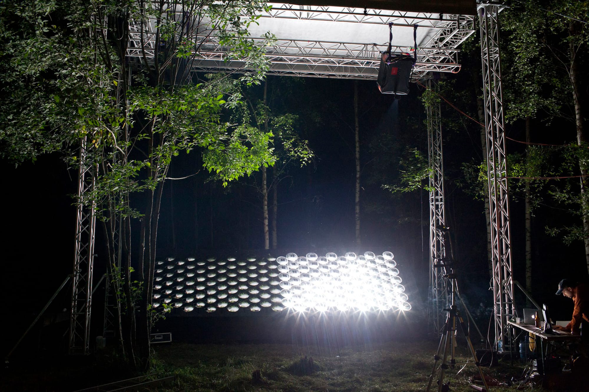 Kimchi and Chips was founded in 2009 by Elliot Woods and Mimi Son to “create an emulsion of imagined reality within our physical world, in order to develop natural interactions between people, nature and the possibilities of the digital network.” Woods hails from Manchester and curates the Screen Lab residency; Son studied Interaction Design at Copenhagen Institute of Interaction Design.