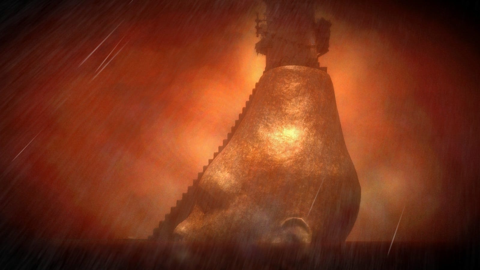 The journey from the lighthouse to the man in the tower at the island’s end encompasses the entirety of Spate. It’s an hour-long journey marked by abstract platform game design, haunts from Bleuth’s past, and otherworldly sights—floating houses, huge horned demons, friendly long-necked creatures—that are either a result of the island’s warped status or hallucinations caused by the absinthe.