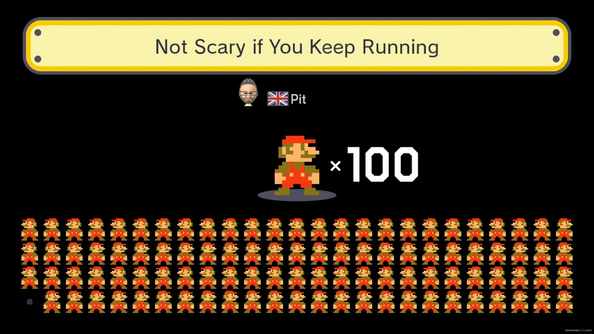 But lots of what the community has done has nothing to do with the Mario canon. There are even a few new (or at least new to me) genres of level that have cropped up near the top of the charts. First is something you might call a museum piece, or maybe a garden walk. This is the type of level where you’re told—via the title or a bunch of coins shaped like letters—to walk, run, or do nothing for the whole level while narrowly avoiding death, stuff blows up, scenes shift, etc. These levels try to recreate the best moments of platformer flow: when you’re running through a level while narrowly yet expertly avoiding death. They’re also bravura performances for the designers, meticulously built roller coasters of koopas, fire wheels, boos, springboards, and all the rest, threatening death with the knowledge of complete safety.
