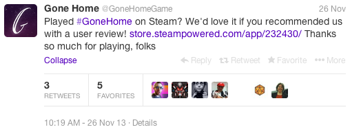 [<a href=”http://killscreendaily.com//storify.com/killscreen/game-designers-who-really-really-want-your-steam-r” target=”_blank”>View the story “Game Designers Who Really Really Want Your Steam Reviews” on Storify</a>]