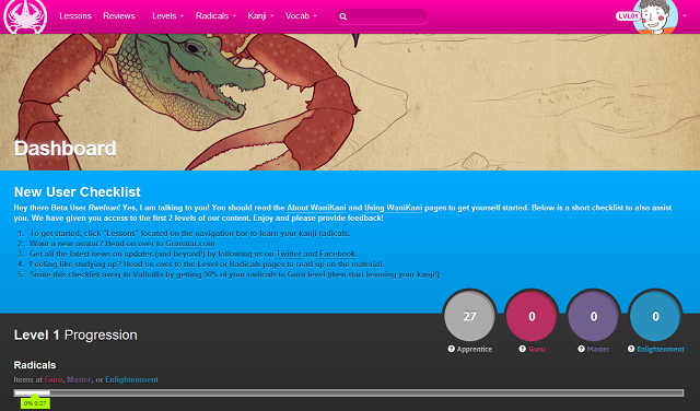 Speaking of gamification, which can help motivate people to do boring things, it’s a useful way to learn a language. Learning Japanese kanji, especially, requires a lot of memorization. Koichi and Viet, who are associated with the Japanese culture blog Tofugu, are developing a kanji-learning website called WaniKani where users level up based on how many kanji they know and how well they know them.