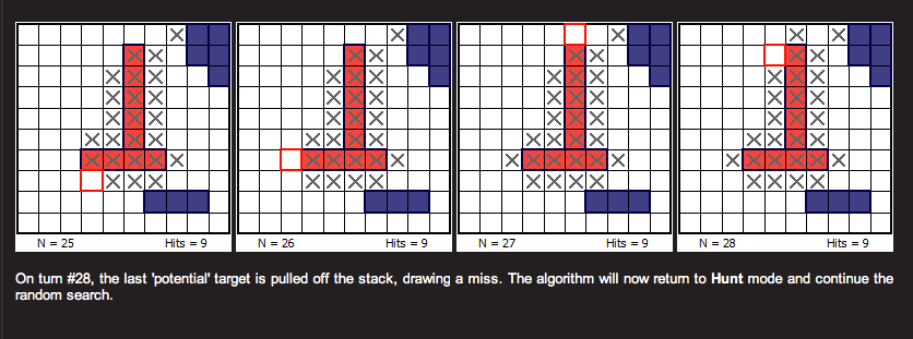Slate outlines Berry’s work and starts with a typical strategy called Hunt/Target. This is how most players play — make a shot and then fire nearby. But Berry divised something ingenious: