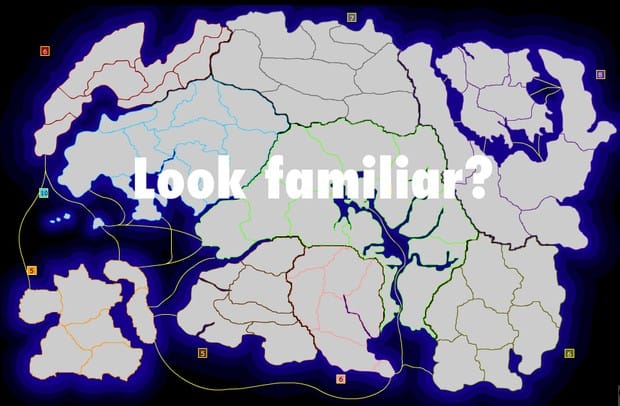 First, Warlight players take their turns simultaneously. Presto: strategic uncertainty. Since you issue orders without knowledge of your opponents’ orders and see them resolved one-by-one only after locking them in, the battlefield situation that shapes your decisions won’t necessarily be the same one that decides their success. There’s a good chance those two armies in New Zealand will be fifteen by the time your small invasion force actually arrives, but it’ll be too late to turn around. (The game’s options also include a fog-of-war feature, which prevents you from seeing how many armies are in territories not adjacent to your own.) You’re still just trying to bump big numbers into little numbers, but you’re no longer certain how little they are; your campaign now requires guesswork, gambling, subterfuge. This single change, all by itself, suddenly introduces an element of (wait for it) risk.