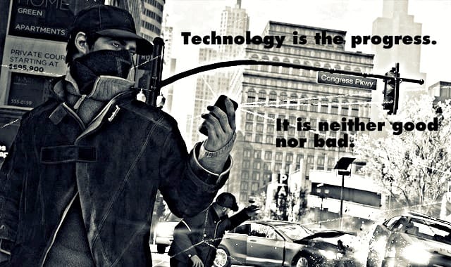 Watch_Dogs also subscribes to that line of thinking. “We’re not saying that this is evil or that this is good,” the game’s lead writer Kevin Shortt said in a recent interview. And his sentiment was echoed by the game’s content director, while speaking on a panel at Comic-Con. “Technology is the progress,” he said. “People are using it. Some people will do things the right way. Some people will do things the wrong way.