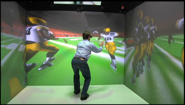 The various cameras can be toggled with a simple button-press, but there is plenty of space for deeper functionality. Allen speaks of a slick user interface called “the back 180.” Since no one really cares about looking behind them at a sporting event, that area can be used to house applications like fantasy sports, player and team stats, and social media, so you don’t have to unmask from your VR goggles to rage-tweet about a blown call.