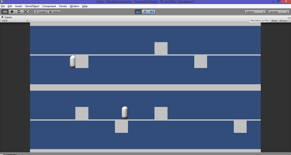 By Sunday evening a winner had to be chosen. The victorious creation was Keith Stuart and Theo Chin’s dual-swapping endless runner Double Droids, in which a pair of robots flee from the edge of the screen, each with their own obstacles to avoid. Griliopoulos’ Split Destiny is a platformer which sees you jump between digital and bookish dimensions. Procter and Karn Bianco’s shoot-‘em-up Just Like Real Life features bouncing bullets, screaming deaths and a gentle piano on the soundtrack. I’m not even sure how it fits the theme. Crossley and Kevin Chandler produce the surprisingly polished GI Joyce, a touch screen game that sees a grandmother take on a whole screen of flying ninjas, who pick up any power-ups that she neglects.