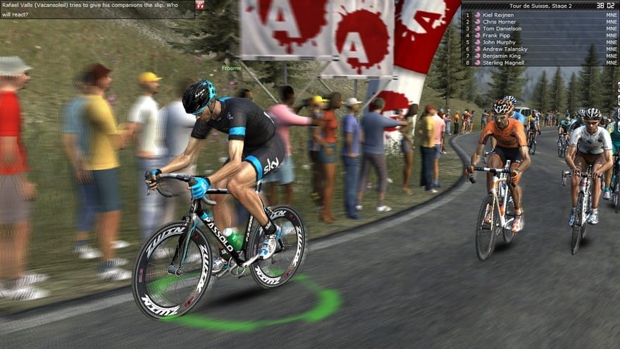 It’s not all bad. All of the freakishly random elements attendant a chaotic event—tire punctures on cobblestone, weather changes, a sudden sickness, tweaks to equipment—are included. You are occasionally subjected to the capricious and random nature of outdoor competition, which felt real. You can even feed your riders an energy gel, which, in a game with so little to actually do, takes on the symbolic importance of storming the Reichstag. But ultimately, Pro Cycling Manager is closer to a fixed-rail shooter without the shooting. You’ll be tempted to test the boundaries of the game world—can you set off, away from the peloton and through this charming countryside town? Did the programmers place a bakery or church just off the route? Can I ride as fast as I can into the crowd, and if so how realistic are the crowd injury animations? The answer, of course, is that you can do none of these things. The game glues you to the Tour’s inexorable and scenic track, as if you reassert that the televisual and the physical must remain forever apart, alien worlds of paradigmatic difference.