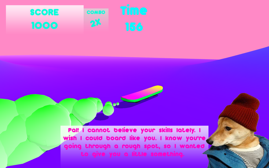 Well, like they always do, videogames are here to save the day when it comes to our unrealistic dreams. You Are A Hoverboard doesn’t just put hovercraft skateboard technology in our grasp: you literally become the hoverboard technology. Made for the Momjam game jam by Chris Wade, the game places you in an appropriately pastel world of futuristic-sounding house music. In order to save your mom from hospital bills, you must do tricks on your hoverboard (naturally).