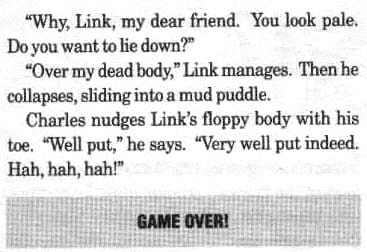 Choose-your-own-adventure books have never exactly been known for their poetic diction or political urgency. If anything, they’re more akin to text-adventure computer games than novels, and, like comics and cartoons, they’ve been subject to plenty of videogame-franchise licensing. This online collection features the deadliest and most disheartening of multiple endings. Find out how Link dies when not by your own game-controller fumbling!